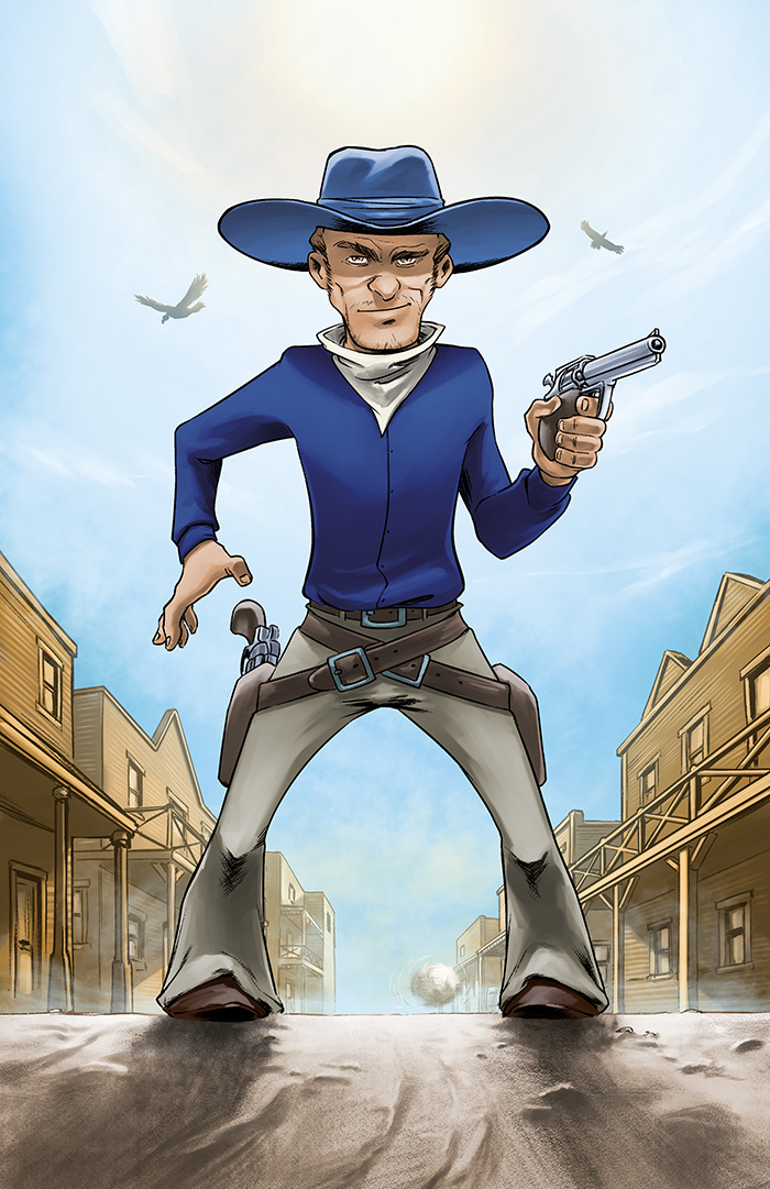 A chaque tour, on révèle la première carte du paquet. les joueurs doivent réagir le plus rapidement possible selon cette carte : tirer sur les autres joueurs, se défendre ou se cacher dans les bâtiments pour échapper aux habitants. Quand un joueur n’agit pas correctement, il reçoit une balle. Quand un joueur reçoit sa sixième balle, le jeu est terminé et le joueur ayant reçu le moins de balles est le vainqueur.